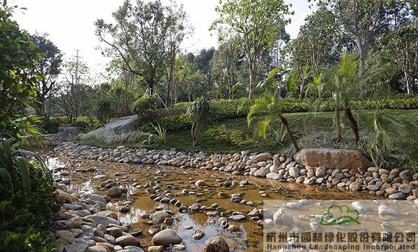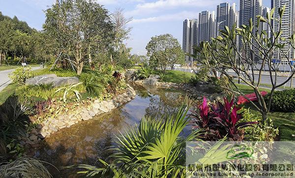 “項(xiàng)目將海綿城市理念融入公園建設(shè),園路鋪裝采用透水混凝土,下雨時雨水可快速滲透,路面不積水;旱溪景觀則在下雨時蓄水,雨水可用于植物的日常澆灌,干旱時,鋪滿鵝卵石的水底又與周邊豐富的植物營造出另一種園林意境。”隨著葉偉華的介紹,項(xiàng)目建設(shè)中許多隱藏的細(xì)節(jié)不斷展現(xiàn),生態(tài)造園的理念進(jìn)一步深入人心。