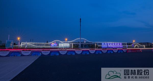 在北側(cè)迎賓區(qū)打造綠化景觀,杭州園林股份以匠心雕琢,以細(xì)節(jié)致勝,通過微地形處置,營造開合有致的多變空間,植物配置以銀杏、黃山欒樹、丹桂等色葉樹種為背景基調(diào),搭配長效花境組團(tuán),營造線條流暢大氣、四季風(fēng)景各異的景觀風(fēng)貌。后期,又加入了亞運(yùn)會(huì)吉祥物、道旗裝飾等,為花滿杭城的亞運(yùn)氛圍增色添彩。