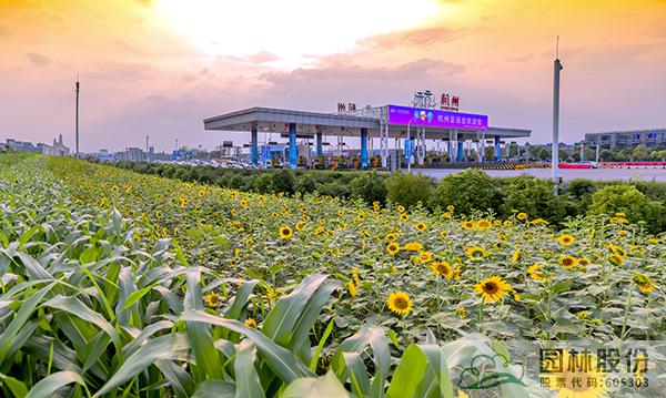 在南側(cè)送客區(qū)打造特色景觀農(nóng)業(yè)區(qū),通過地形處理和土壤改良,采用堆坡種植,以背景、前景和蔬菜花鏡三景融合的農(nóng)業(yè)種植造綠方式,創(chuàng)造性地將入城口和景觀農(nóng)業(yè)造景融合,在2.3萬平方米的區(qū)域里,描繪出春天花開蝶舞紛飛、秋日豐收遍地金黃的田園風(fēng)光大美畫卷。